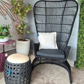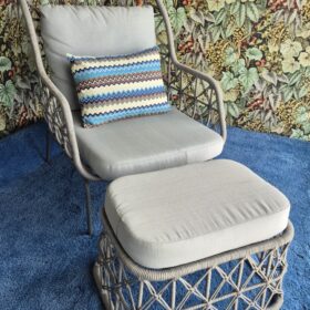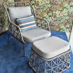 Poltrona e Pufe em Corda Náutica Cinza